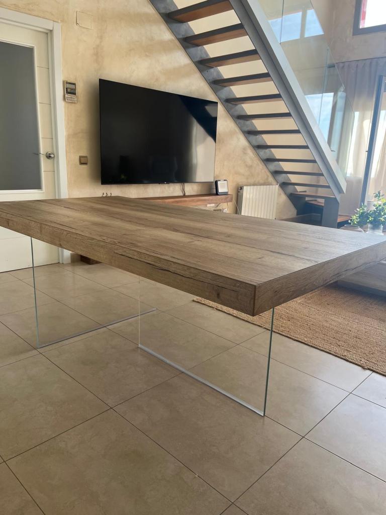 - Diseño único: patas de cristal que crean un efecto flotante y amplían visualmente el espacio.