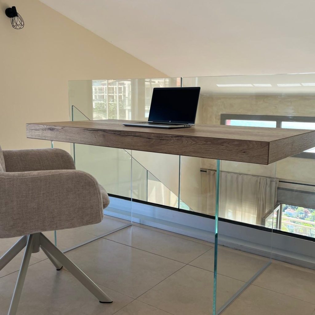 Base: Vidrio ultraclear templado de 12 mm casi invisible, que crea el efecto de «mesa flotante».